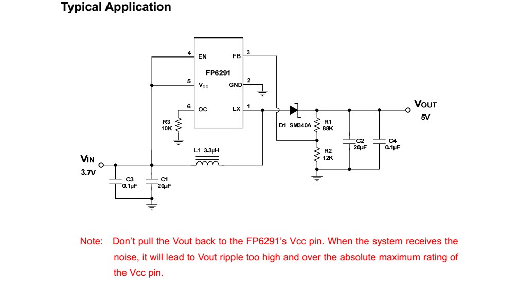FP6291為一顆CC(恒流)模式的PWM升壓IC,適用于鋰電池(3~4.2V)輸出5V,1A的移動電源應用。