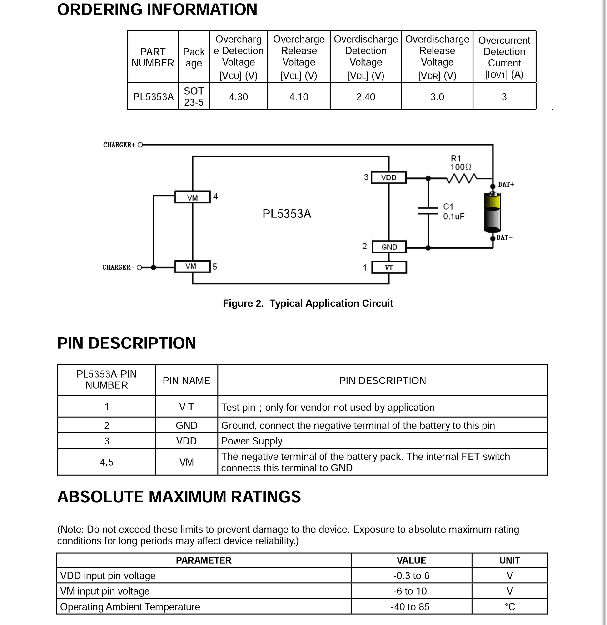 如果覺得PL5353A保護電流低,可以用DW01+8205(MOS管,可以并聯多個); 也可以看看PL5358A,外圍僅一個0.1UF的電容,SOT23-5封裝。