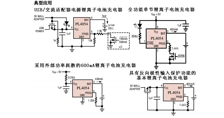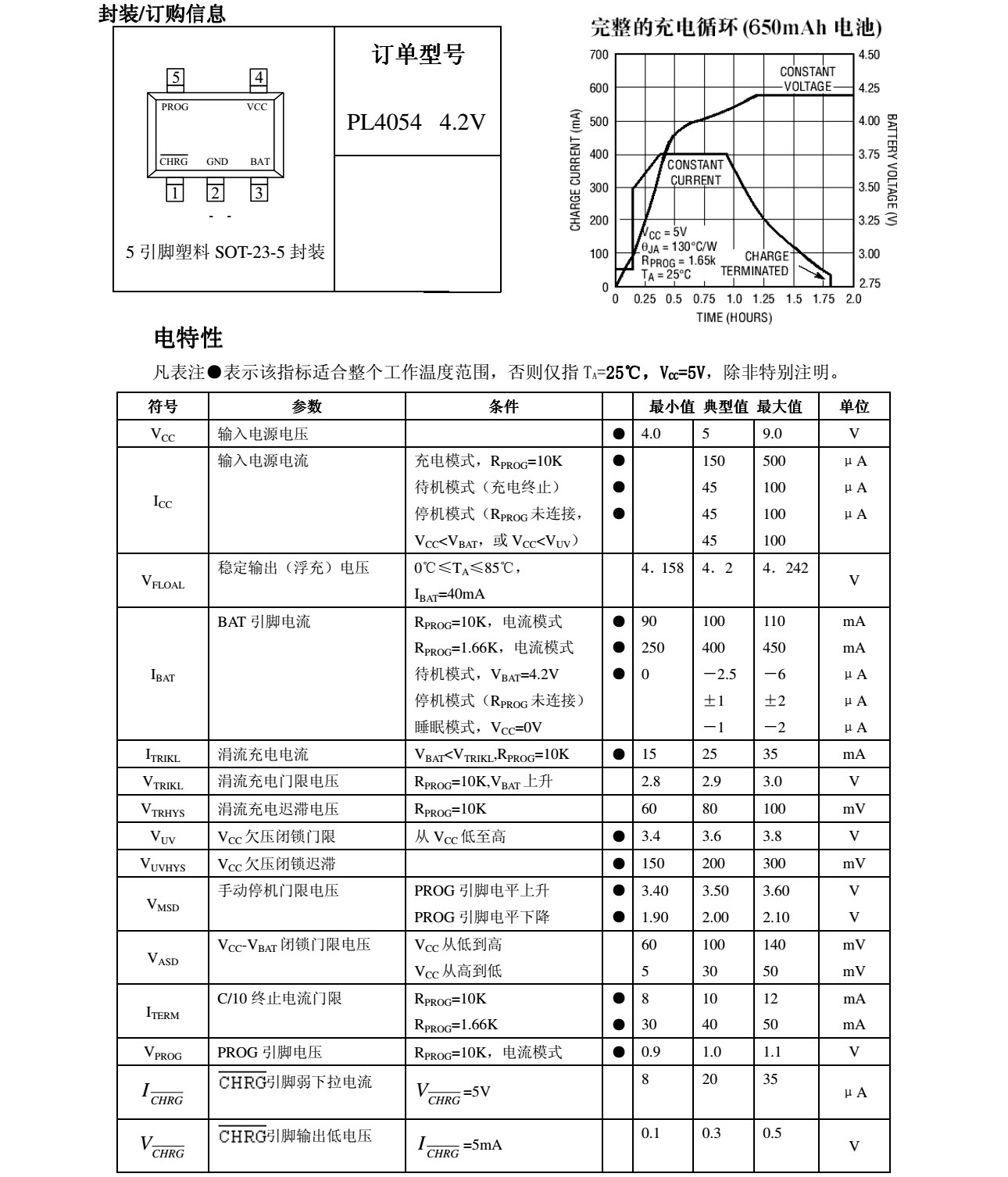 PL4054是單節鋰電池充電管理IC; 充電電流:0.1A~0.8A,線性 雙指示燈,適合USB 5V輸入。 |