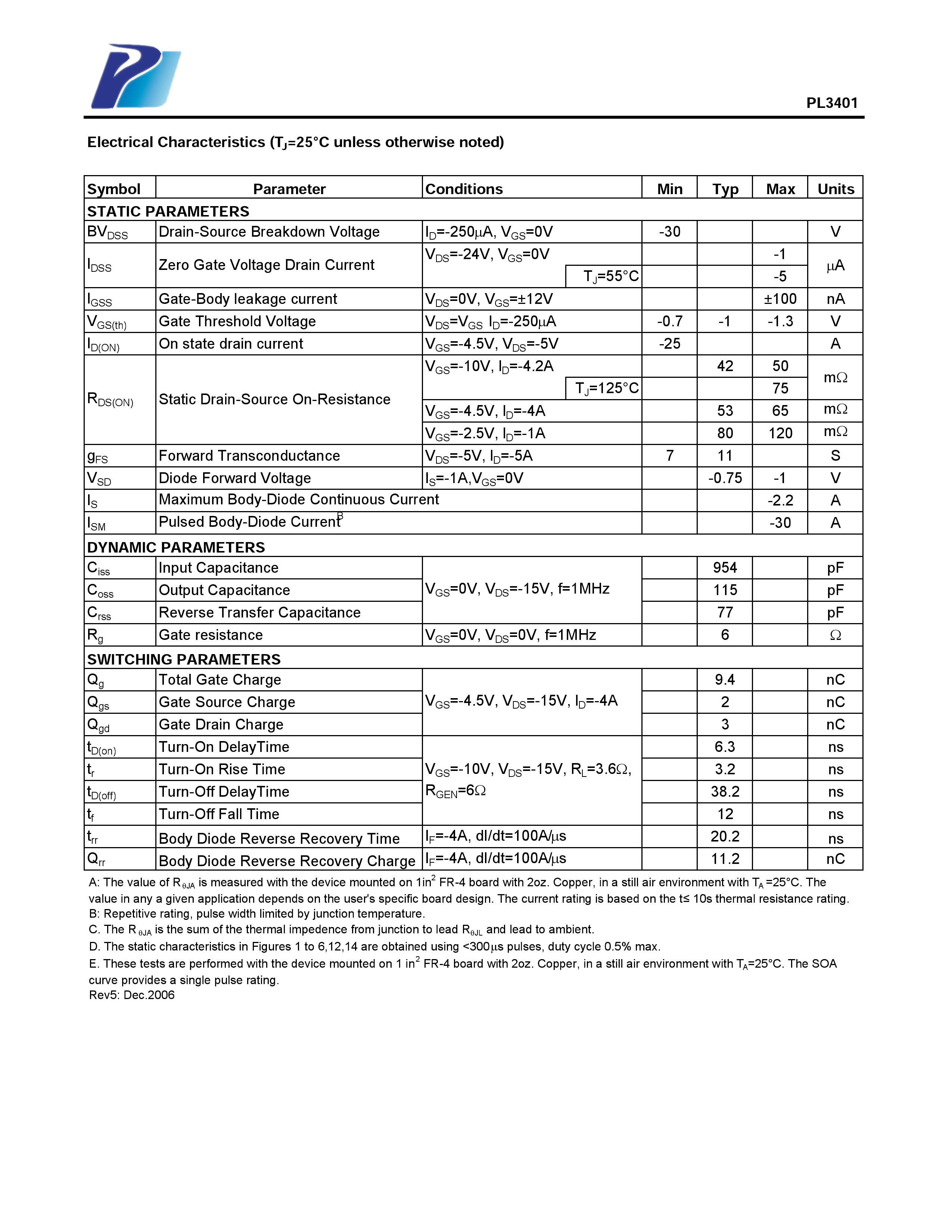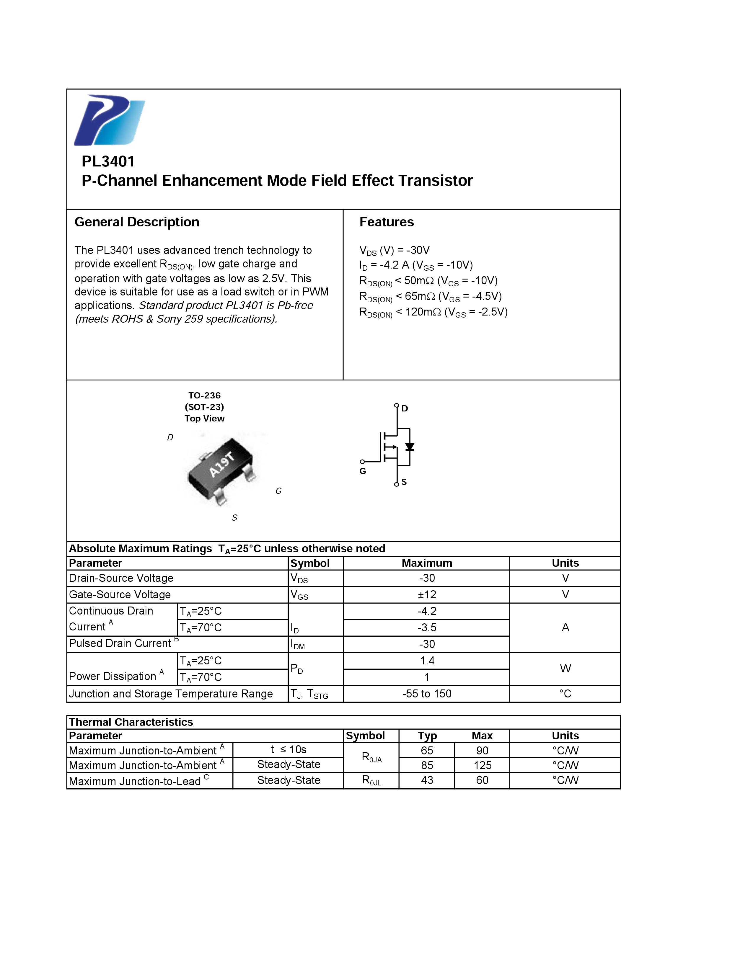 PL3401-PMOS管(-30V -4.2A),絲印A19T