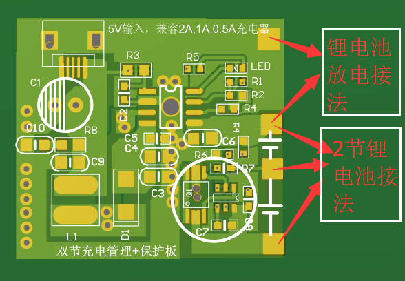 5V輸入,給兩節鋰電池串聯的專用充電IC-PL7501C ,兼容5V1A,2A等適配器,自動兼容電流。