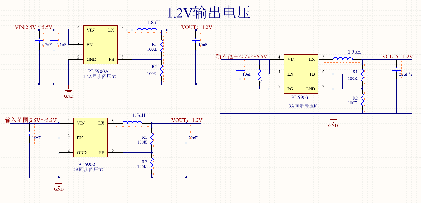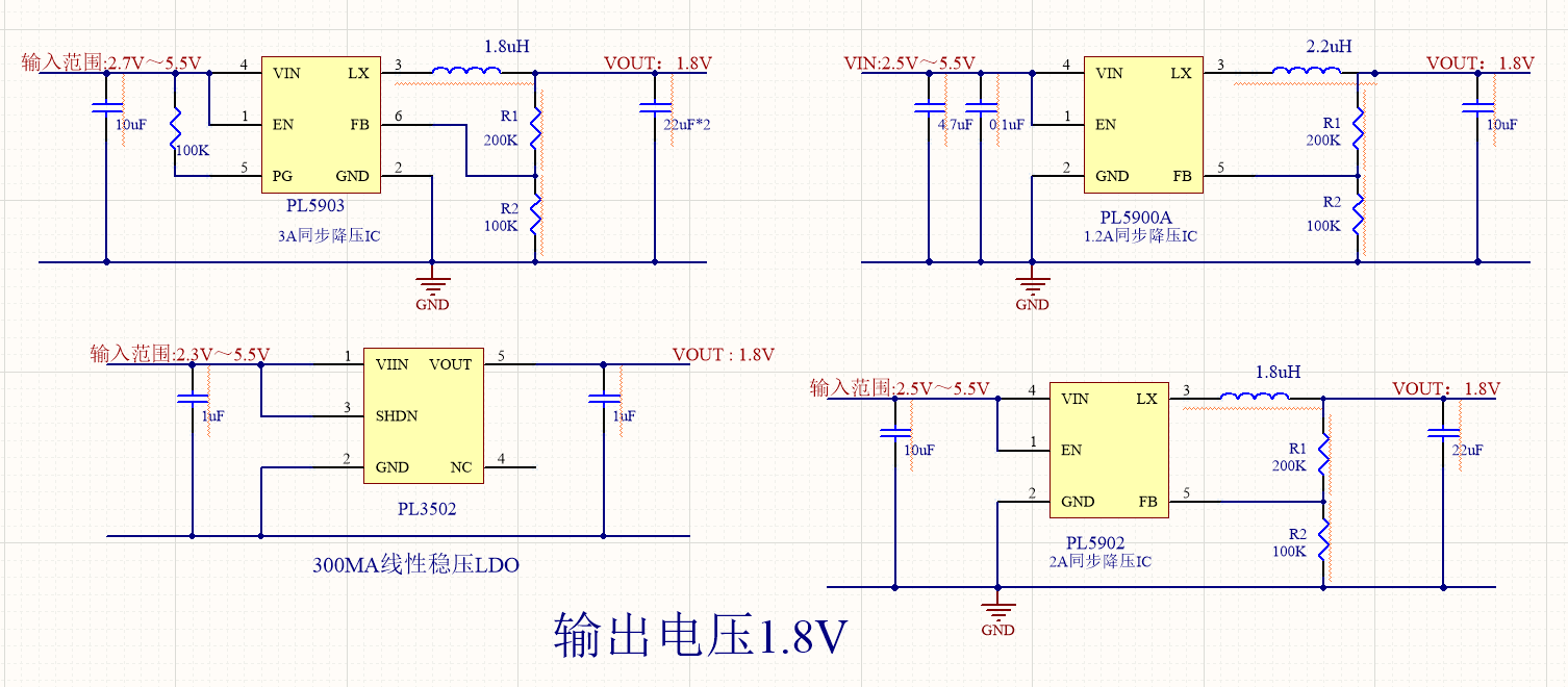 5V降壓1.8V,1.5V,1.2V,在對于電流,功耗,壓差等等不用需求時,需要選擇不同的芯片來幫助工程師搭建合適的應(yīng)用電路。