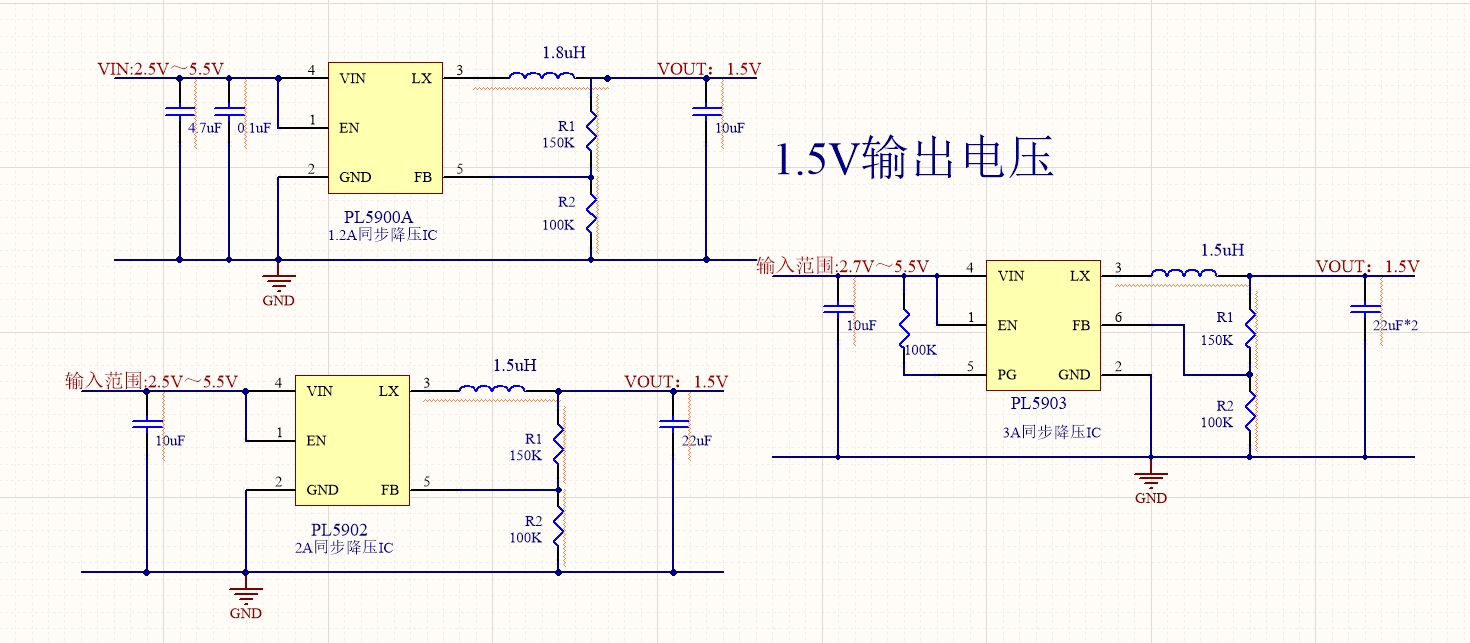 5V降壓1.5V電路: