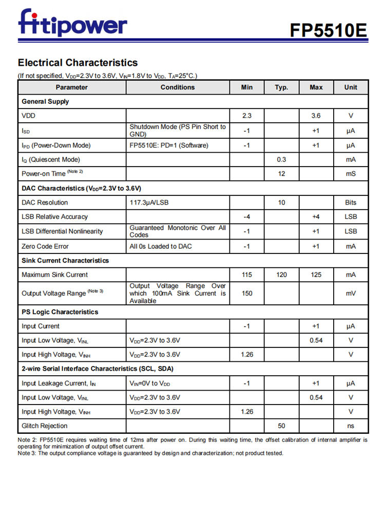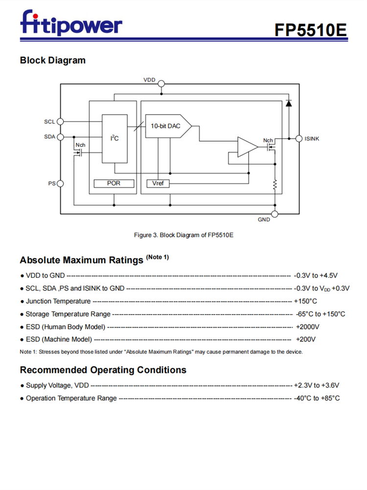 FP5510E 10位DAC 120mA VCM驅動程序與I2C接口