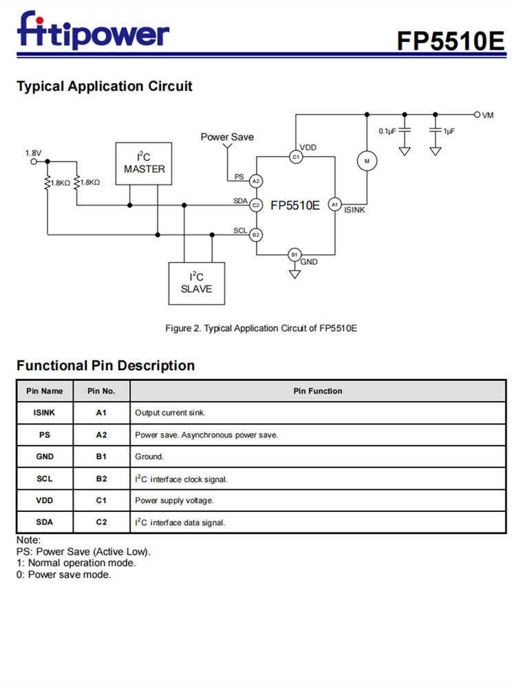 FP5510E設計用于自動對焦操作,包括數碼相機模塊、光學變焦相機手機和鏡頭自動對焦。FP5510E的I2C地址為0x18h。