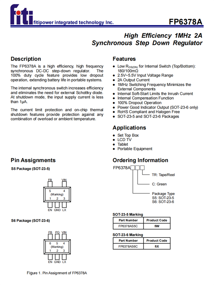 FP6378A SOT23-5 2A同步降壓芯片 DC-DC轉(zhuǎn)換器