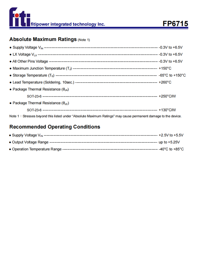 FP6715可在一個(gè)節(jié)省空間的SOT-23-6軟件包中使用,可用于便攜式應(yīng)用程序。