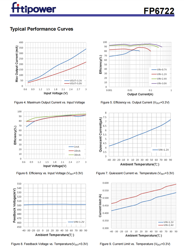 FP6722是一種高效的滯回電流模式拓?fù)渫缴龎褐绷?直流轉(zhuǎn)換器,可以從單/雙電池NiCd、NiMH或堿性電池中運(yùn)行,如輸入電壓低于0.7V。轉(zhuǎn)換器的輸出電壓可以通過(guò)外部電阻分壓器從1.8V調(diào)整到最大5.5V。此外,轉(zhuǎn)換器還包括一個(gè)0.5Ωn通道MOSFET開關(guān)和0.7Ωp通道同步整流器。因此,不需要外部肖特基二極管,可以得到更好的效率,接近94%。