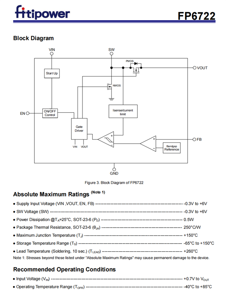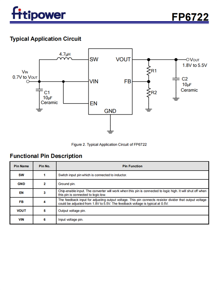 FP6722可在一個(gè)節(jié)省空間的SOT-23-6軟件包中使用,可用于便攜式應(yīng)用程序。