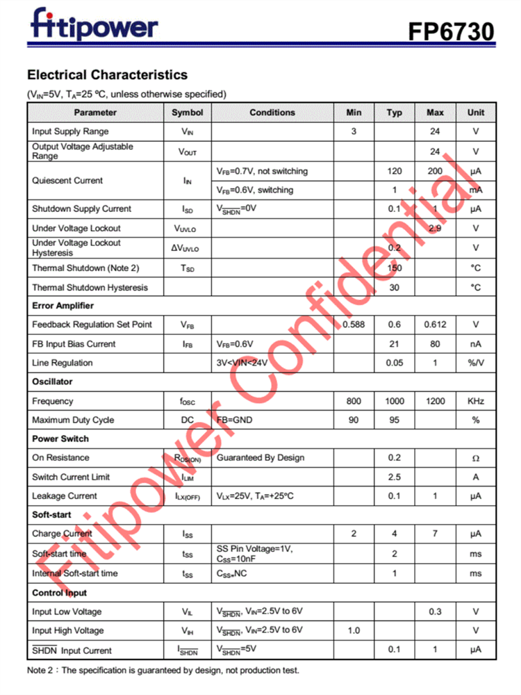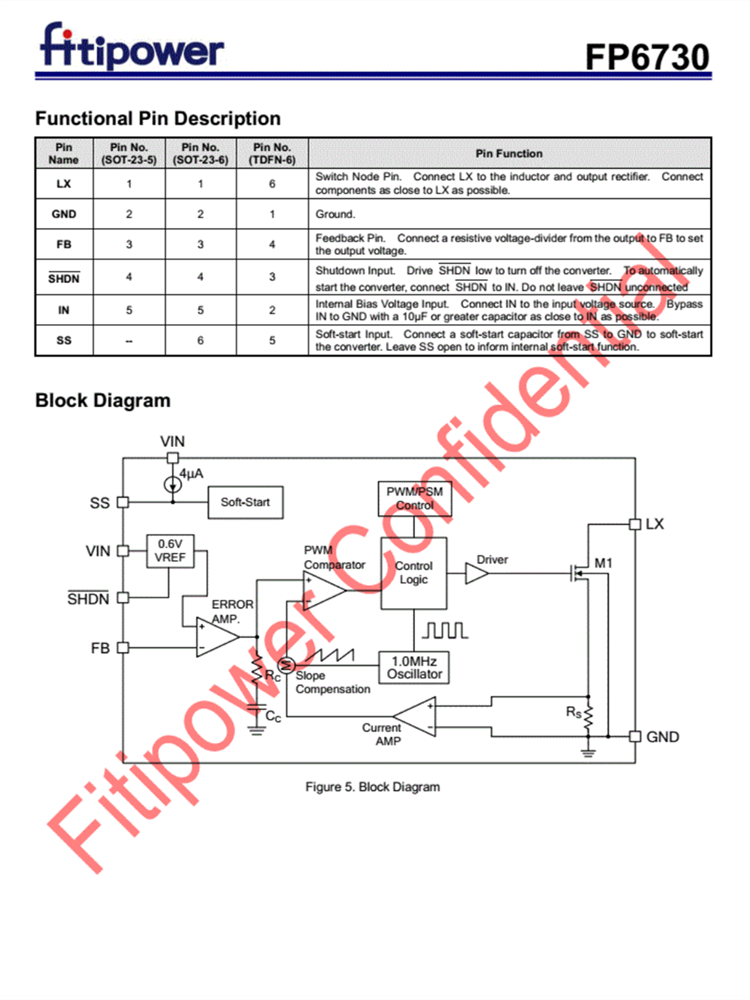 FP6730 采用節省空間的 SOT-23-5、SOT-23-6 和 TDFN-6 (2mm x 2mm) 封裝。