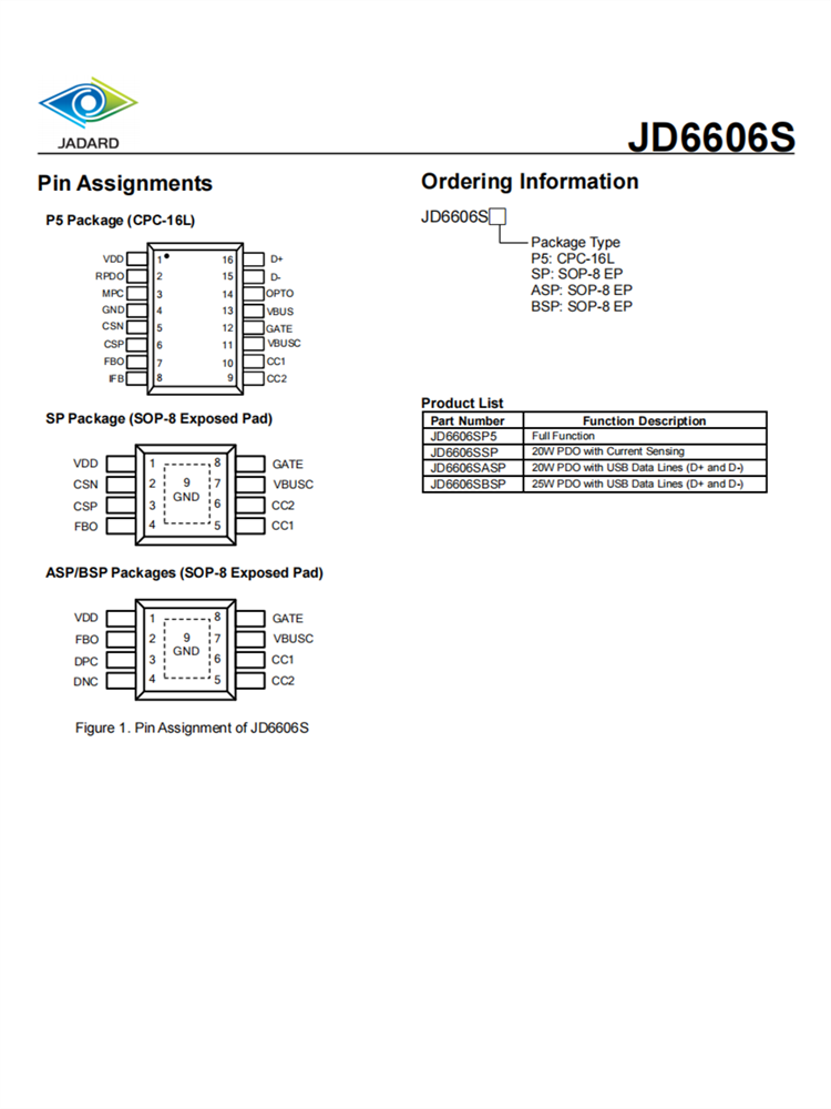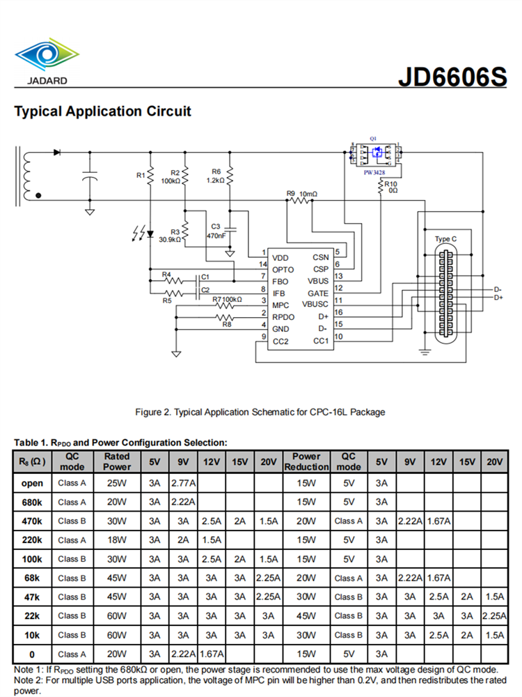天德鈺JD6606S,USB-PD 3.0和HVDCP控制器