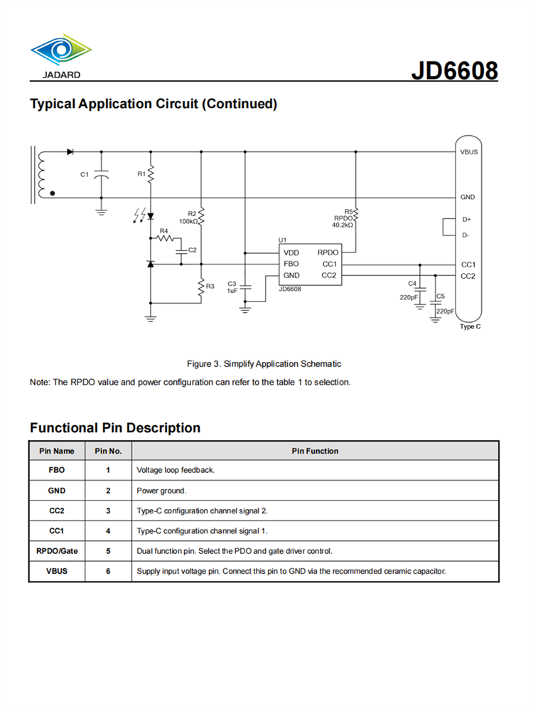 JD6608可以支持PDO可選擇的功能,并控制阻塞MOSFET的開啟或關閉,因此成本更低,更容易設計。