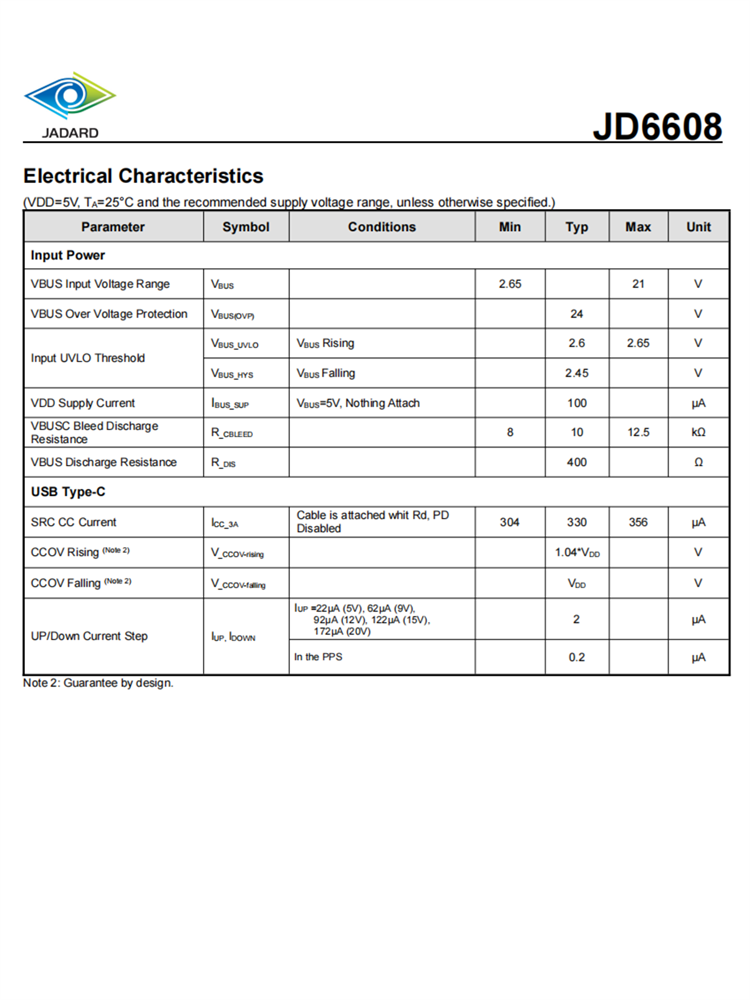 JD6608是一個簡化的USB電源傳輸3.0協議控制器。它實現了USB Type-C和USB電源傳輸3.0可編程電源(PPS)協議。為了滿足PPS規范,JD6608支持最小3.3V和最大21V的輸出電壓控制。如充電應用程序,如旅行適配器、充電器和電源組。