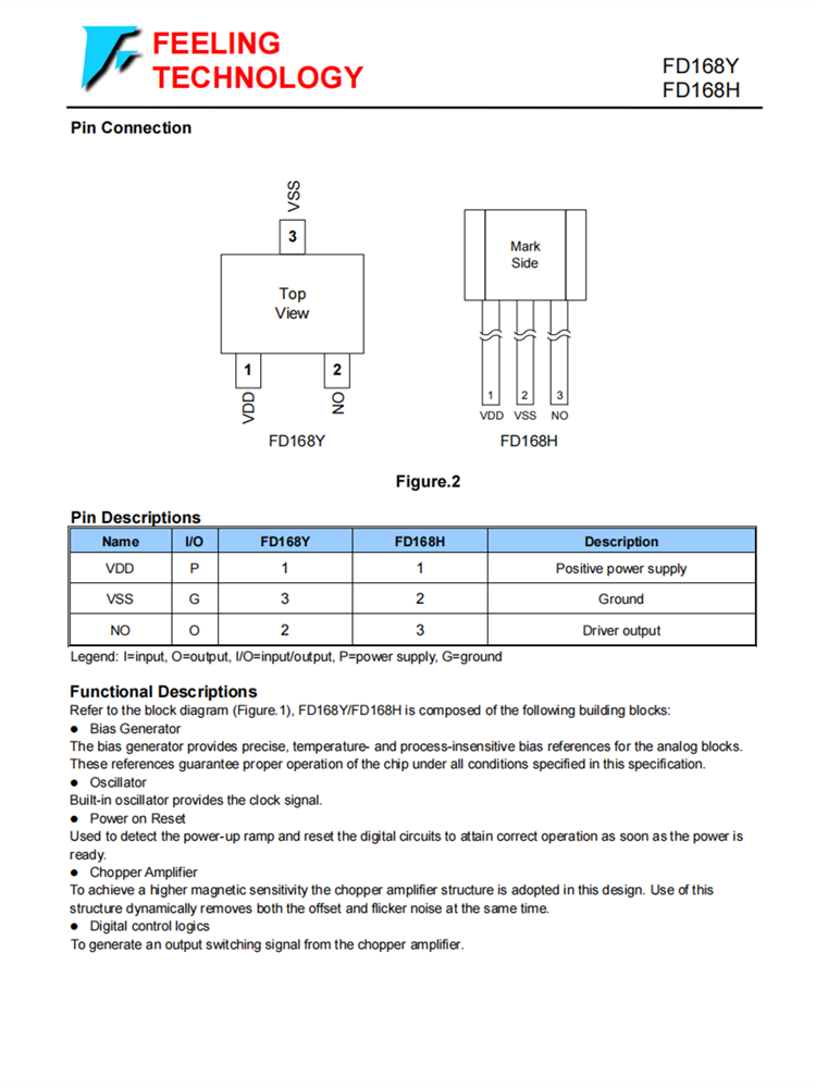 FD168Y/FD168H是一個具有鎖存數(shù)字輸出的霍爾傳感器。它適用于無刷直流電機的電子換向應用。FD168Y/FD168H使用斬波器放大器進行磁信號放大,可以實現(xiàn)低偏移量,從而實現(xiàn)精確的磁開關閾值。