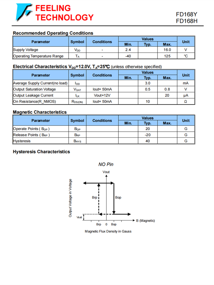 FD168Y/FD168H 單數(shù)字輸出霍爾效應鎖存器芯片