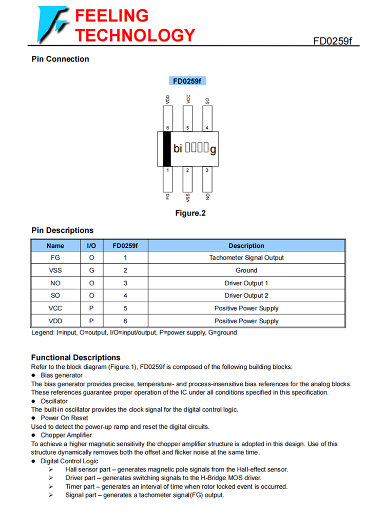 FD0259F 帶有嵌入式霍爾傳感器的智能電機(jī)驅(qū)動器芯片