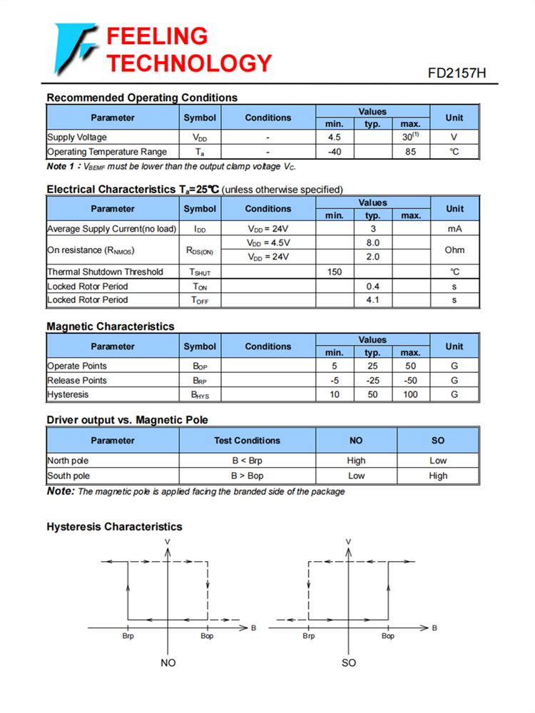 FD2157H 帶有嵌入式霍爾傳感器的智能電機(jī)驅(qū)動(dòng)器芯片