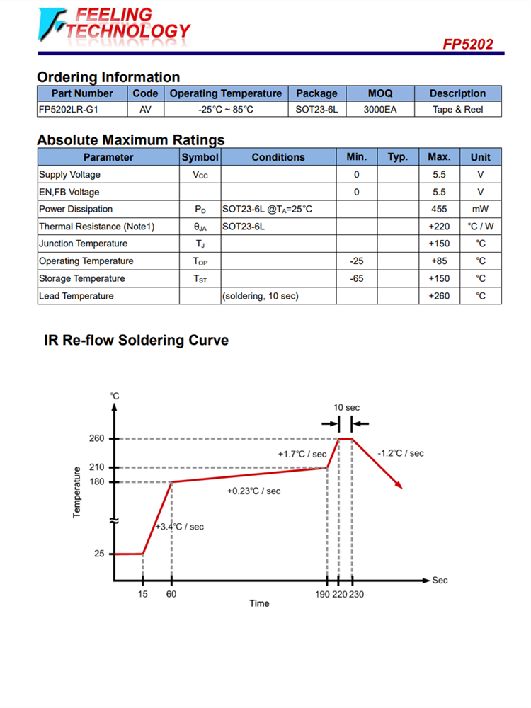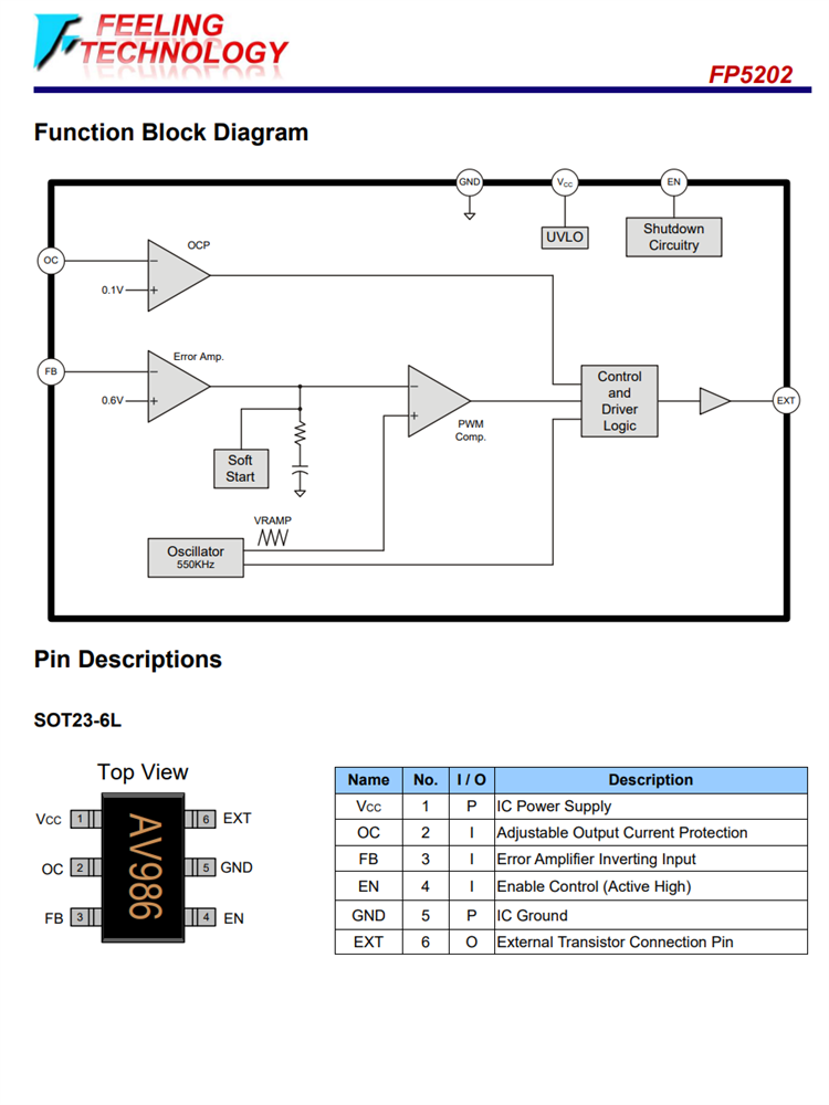 FP5202可在小足跡SOT23-6L包,適合節省空間的PCB布局。