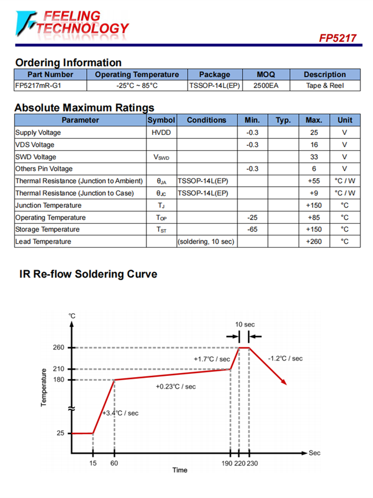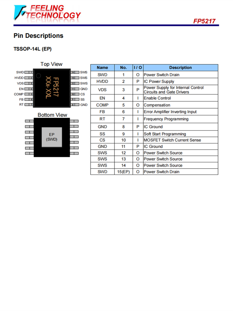 FP5217可在小占地面積的TSSOP-14L(EP)包中使用,以適合為應用領域節省空間的PCB布局。