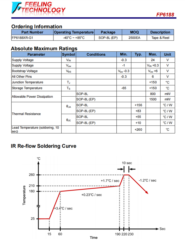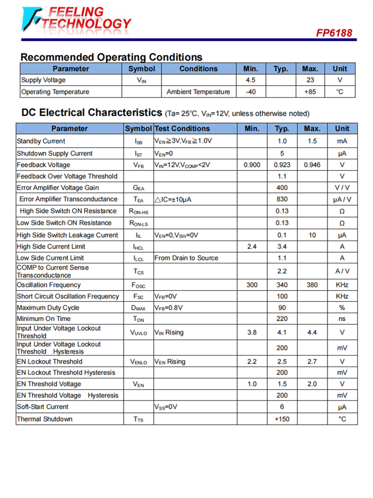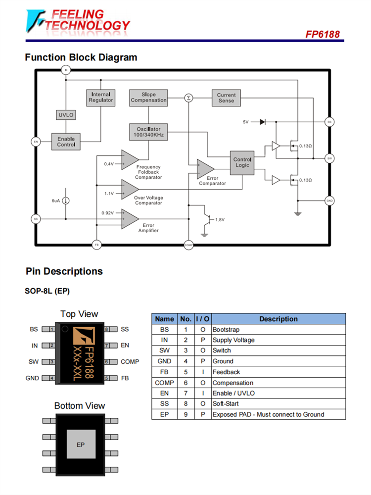 FP6188 2A、23V、340 KHz同步降壓變頻器芯片