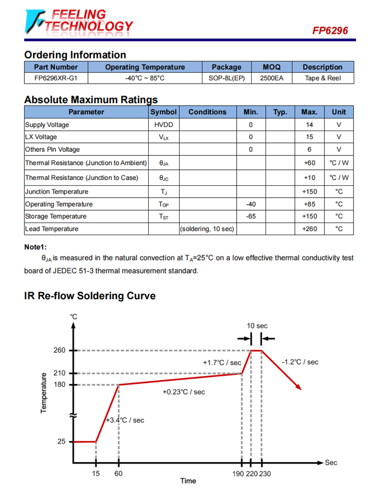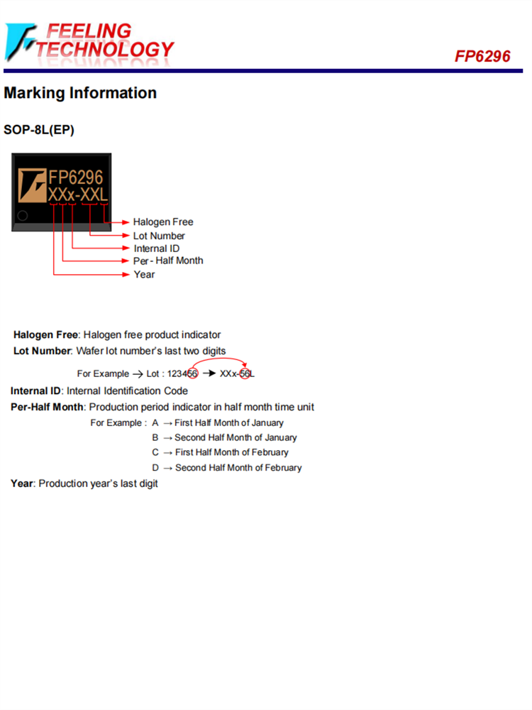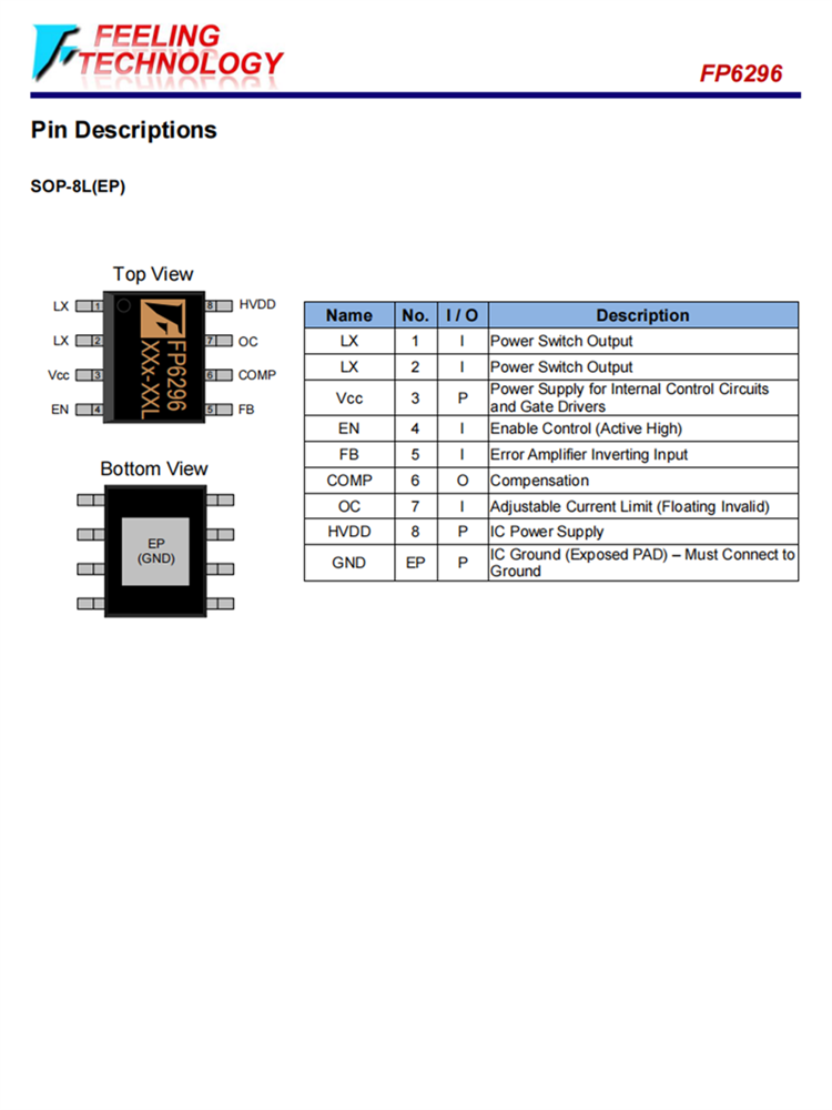 FP6296可在SOP-8L(EP)包中使用,適合于應用領域的節省空間的PCB。