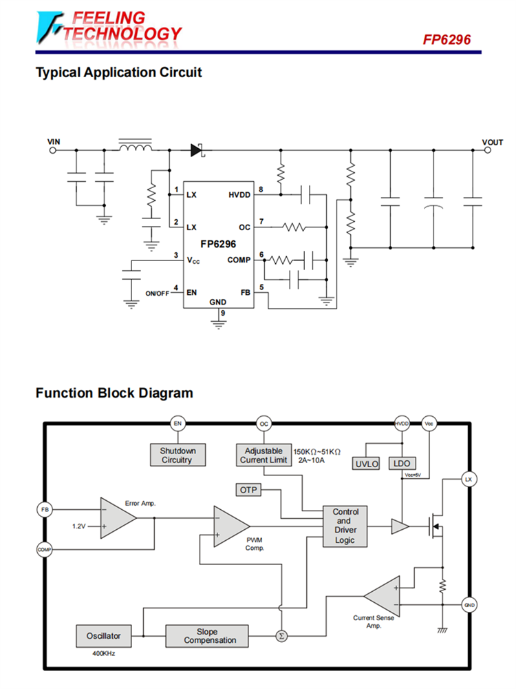FP6296 10A電流模式非同步PWM提升轉換器芯片