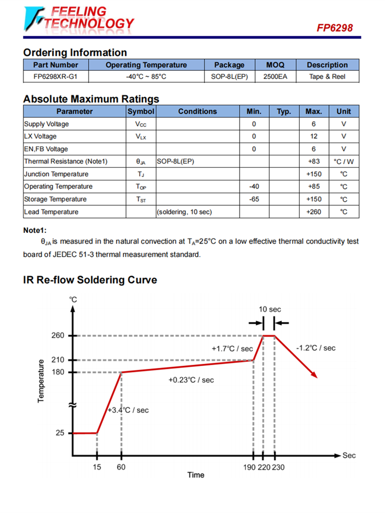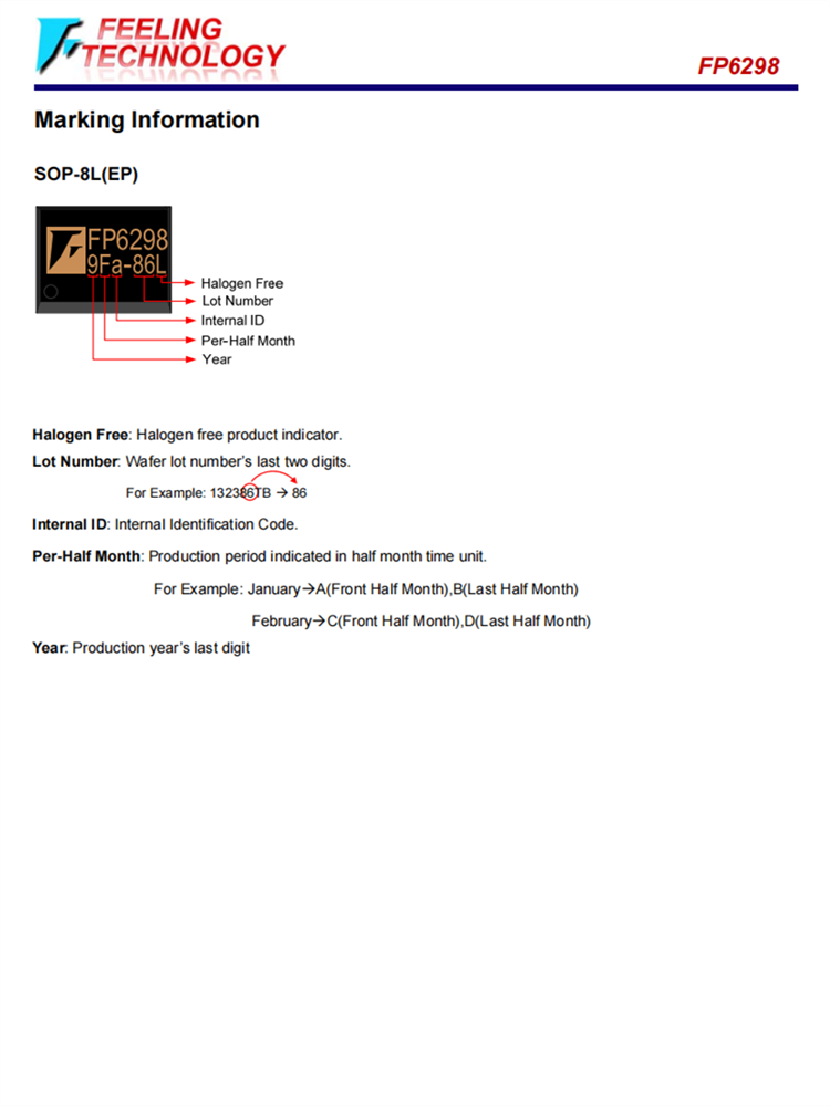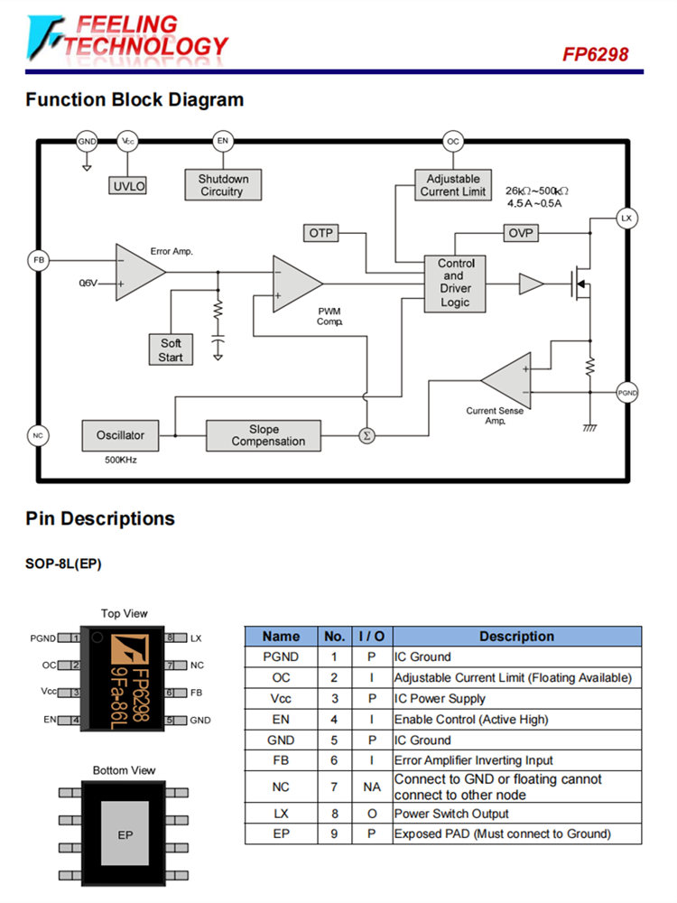 FP6298可在SOP-8L(EP)軟件包中提供,并為應用程序領域提供了節省空間的PCB。