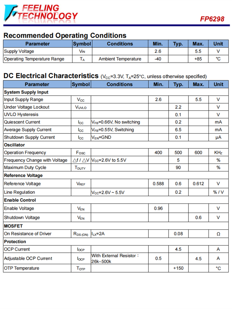 FP6298是一個電流模式升壓DC-DC轉換器。它是內置PWM電路0.08Ω功率MOSFET,使該調節器高效。內部補償網絡還可以最小化多達6個外部組件計數。誤差放大器的非反相輸入連接到一個0.6V的精度參考電壓,內部的軟啟動功能可以降低涌入電流。