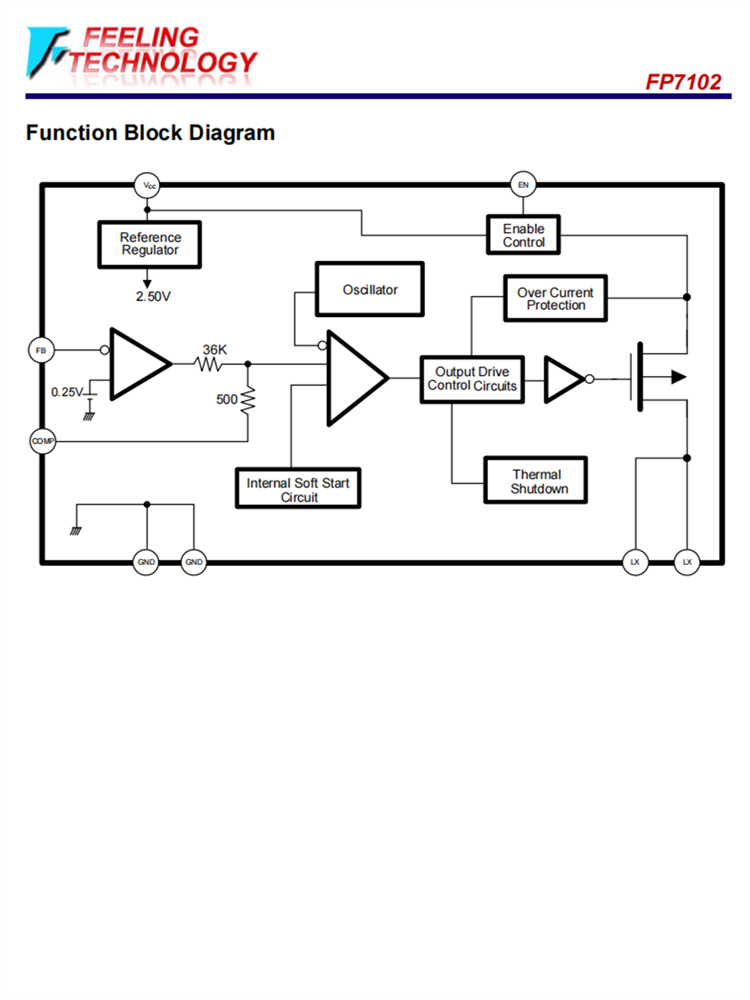 FP7102是一個PWM控制降壓轉換器,旨在為驅動高功率led提供一個簡單、高效的解決方案。通過一個0.25V的參考電壓反饋控制來最小化功耗,一個外部電阻器根據需要設置電流,以驅動各種類型的led。FP7102包括一個高電流的P-MOSFET,以實現高效率和優異的瞬態特性。PWM控制電路能夠將占空比從0線性改變到100%。其他功能包括用戶可訪問的EN引腳,用于啟用、熱關機、逐循環電流限制和過電流保護。