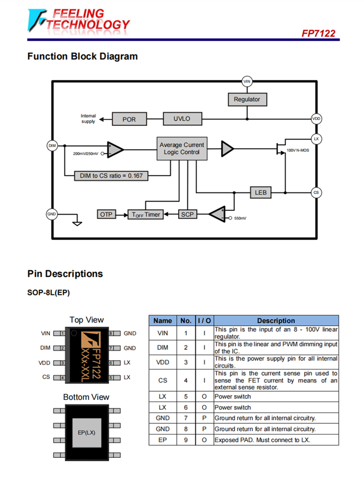 FP7122 具有平均模式恒定電流控制的LED驅動器芯片