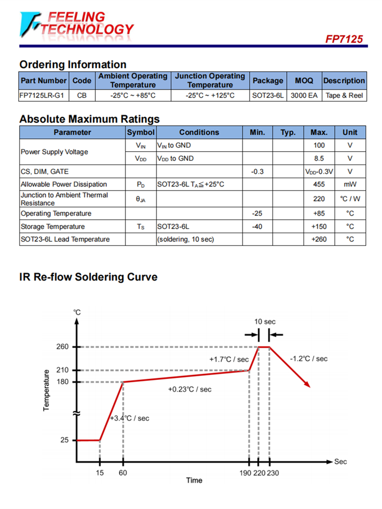 FP7125是在恒定關閉時間模式下工作的平均電流模式控制LED驅動器IC。FP7125不產生峰值到平均的誤差,因此大大提高了LED電流的精度、線路和負載調節,而不需要任何回路補償或高側電流傳感。輸出的LED電流精度為±3%。
