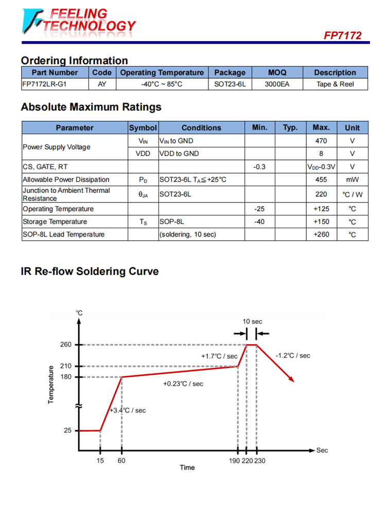 FP7172可在小足跡SOT23-6L包,適合節省空間的PCB布局。