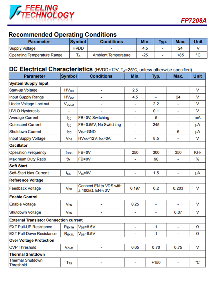 FP7208A 針對LED驅動程序的非同步PWM啟動控制器芯片