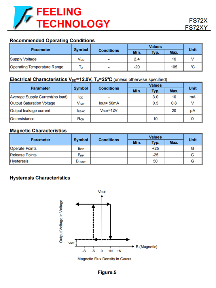 FS72X 單數字輸出霍爾效應鎖存器芯片