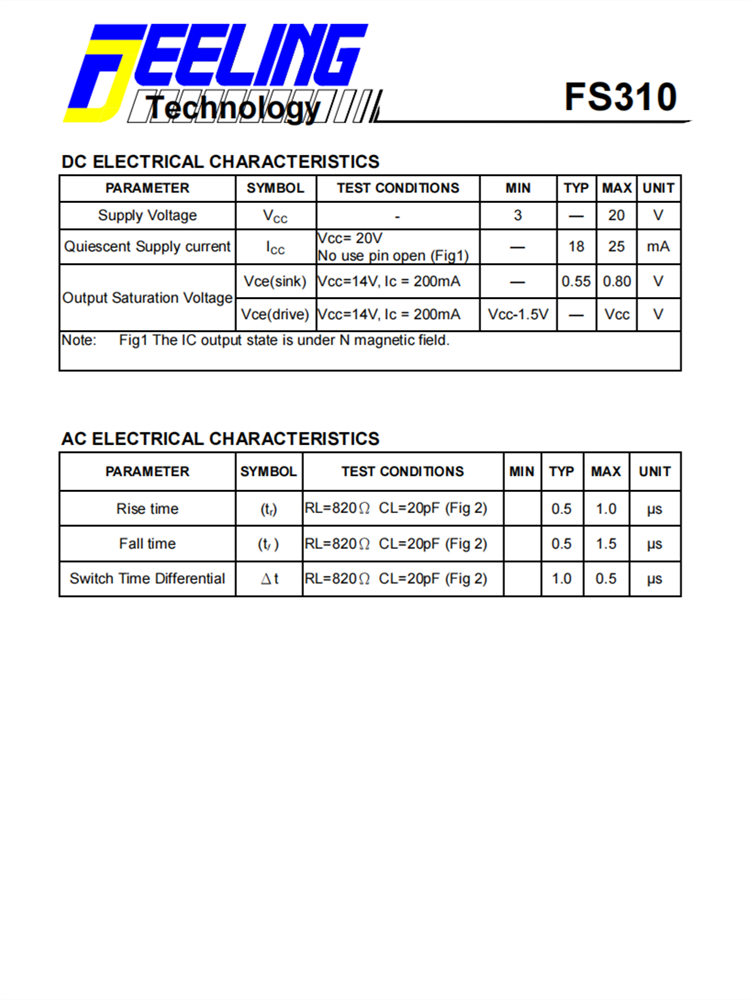 FS310是一種由霍爾傳感器和輸出線圈驅(qū)動器組成的1個芯片,應(yīng)用于單相直流電機。霍爾效應(yīng)傳感器的高靈敏度適用于從微型CPU冷卻器到鼓風(fēng)機和直流風(fēng)扇的電機。典型的工作電流為0.3A,工作電壓范圍較寬。