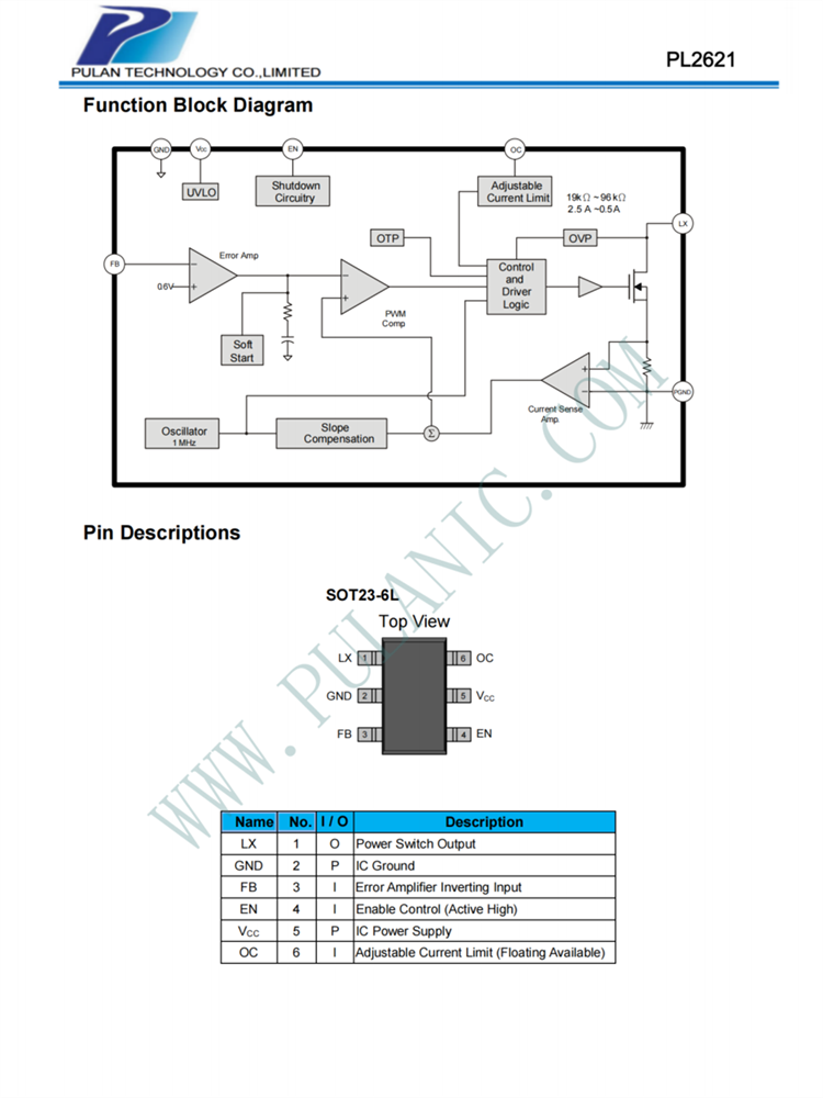 PL2621 SOT23-6L PWM升壓DC/DC轉換器