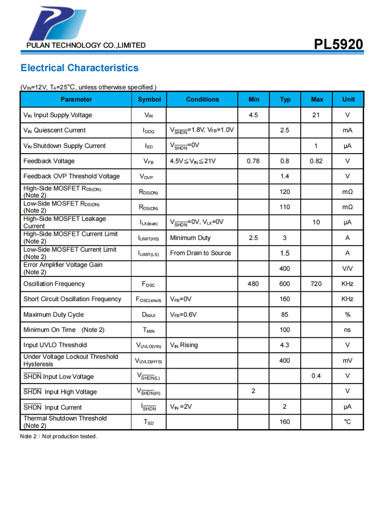 PL5920是一種同步降壓DC/DC轉換器,提供廣泛的4.5V到21V輸入電壓范圍和2A連續負載電流能力。