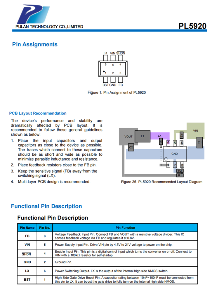 PL5920有SOT-23-6包,提供良好的導熱性。
