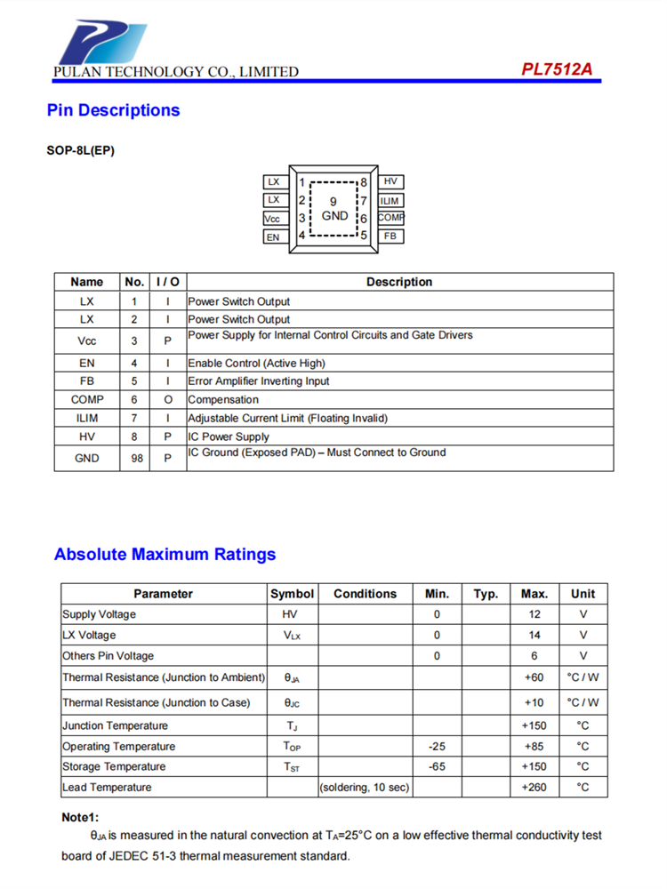 PL7512A可在SOP-8L(EP)包中使用,用于為應用領域節省空間的PCB。