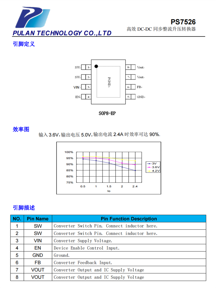 ?功能:高效率的鋰電池衕步整流陞壓IC,專爲(wèi)5V1A的應(yīng)用場(chǎng)景設(shè)計(jì)。